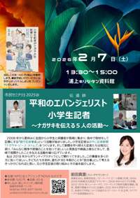 市民セミナリヨ2025I 平和のエバンジェリスト 小学生記者 〜ナガサキを伝える5人の活動〜 ![]() flyer(pdf 685Kb) |